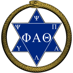 In our symbolism, it signifies happiness, fearlessness, and eternity. Superimposed on the black outline are two triangles on three letters: PHI, ALPHA, THETA - "Philo Anthropos Theos" - signifying Love, Philanthropy, God.