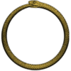 The six-pointed star, composed of two triangles, is worked in black and laid on a circular frame. The whole encircled by a Serpent, the Ouroboros, represents the universe.